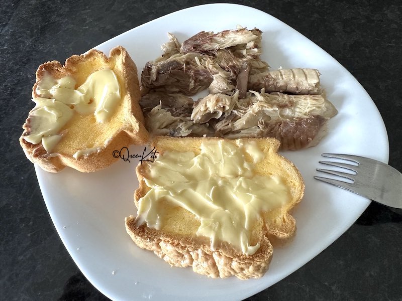 The one thing that I can now add, however, is bread. My goodness have I missed bread! When you’ve eaten the same things for lunch every single day, for months, a sandwich sounds infinitely appealing, don’t you think? Well, I have finally managed to create a decent carnivore bread that isn’t powdery, isn’t sticky, doesn’t feel like you’re eating styrofoam, needs no sweetener and doesn’t require tons of ultra-expensive ingredients (just a few grams).