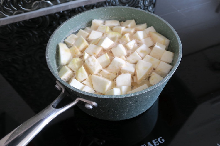 - cube and boil the celeriac in salted water until soft - about 12-15 minutes, depending on how small you cubed it.