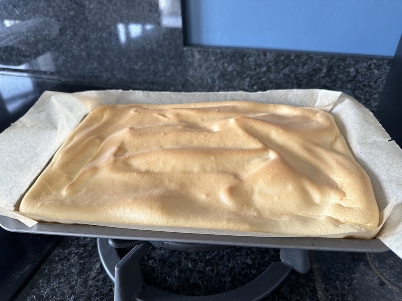 - leave the sponge over a rack to allow residual moisture to evaporate; wipe the baking tray if wet and set it aside for later.