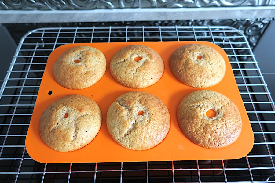 - take the mould out of the oven and wait until the doughnuts are completely cool.