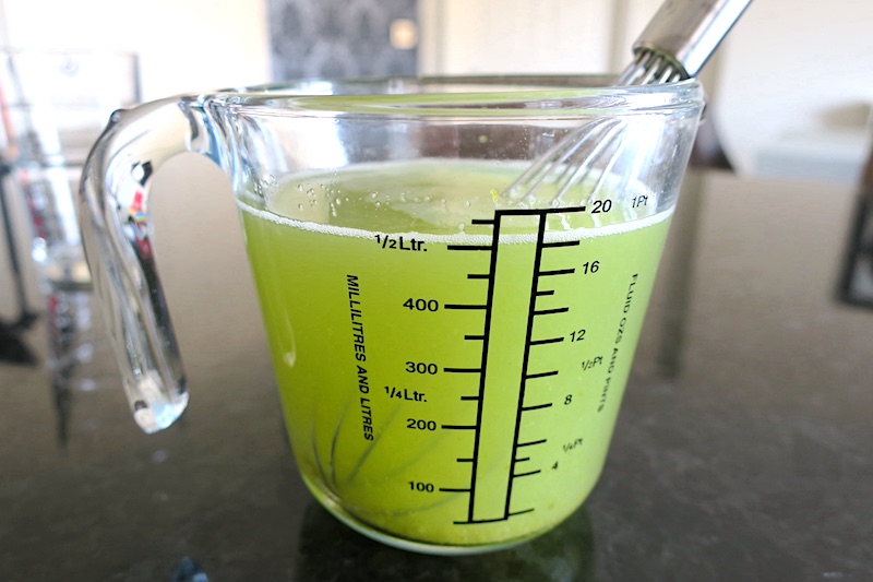 Finally, stir the liquid into the cucumber & lime juice, fill your silicone lolly mould and pop it in the freezer.