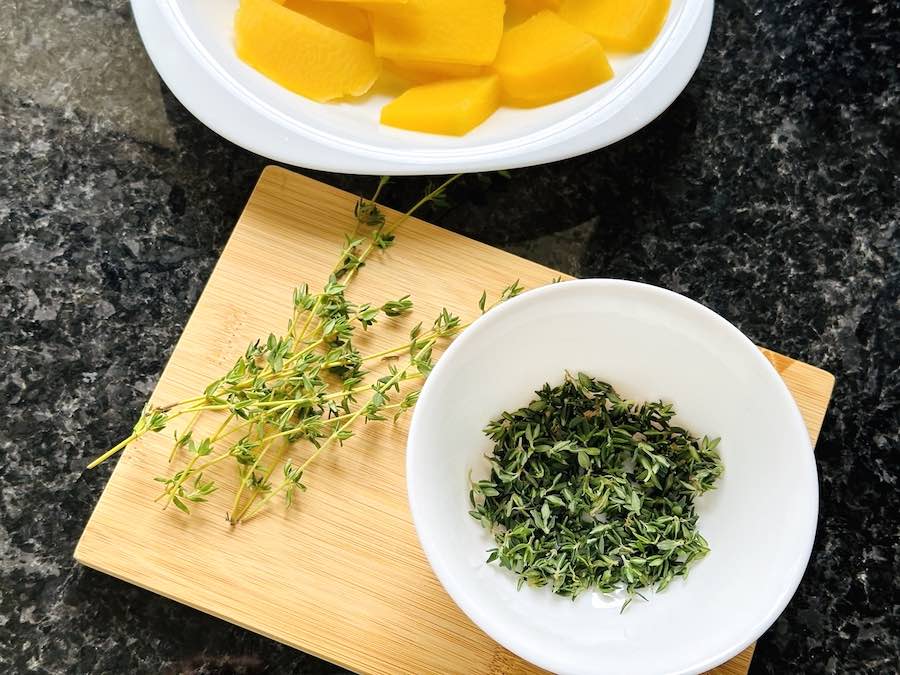 - 2 TBSP fresh thyme (no stems, just leaves)