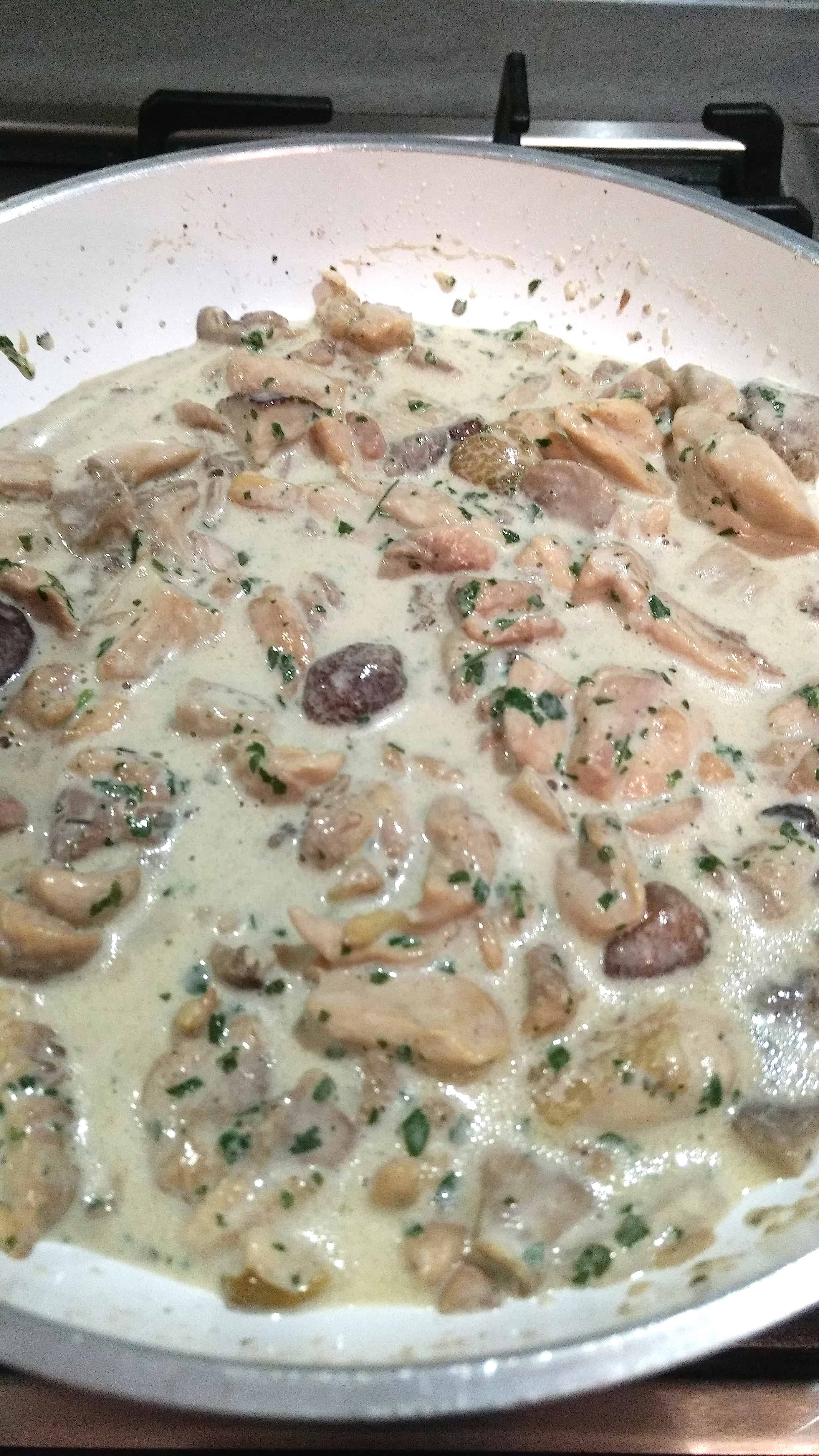 - incorporate gelatine, mascarpone, cream and parsley, bring back to a simmer and turn off heat.