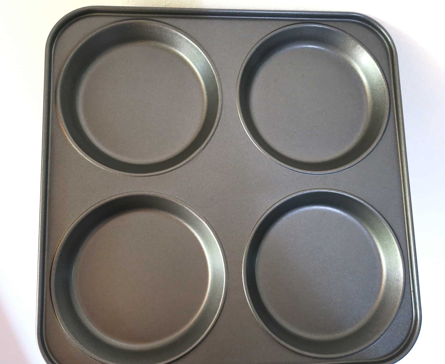 - spread 2-3 drops of EVOO inside each hole of a 4 tart/yorkshire pudding mould (each hole = 10cm Ø - SEE NOTES BELOW).
