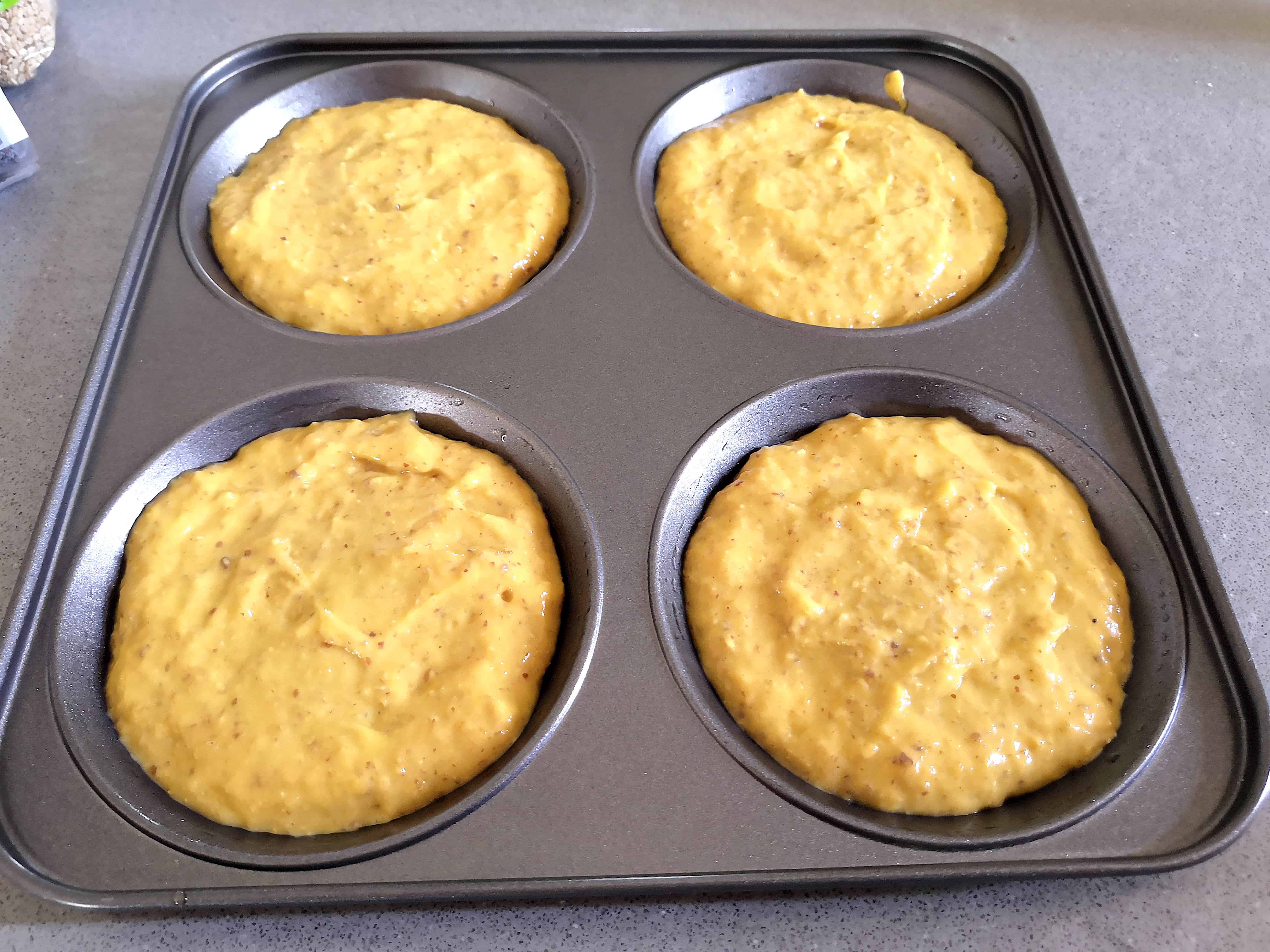 Read ^^^ post if you're intending to sub the fiberflour. Using 20g coarsley ground psyllium husk, I ended up with a very thick foam that I 'shaped' into the moulds. Baking time remains the same. Macros for psyllium version are in the post ^^^.