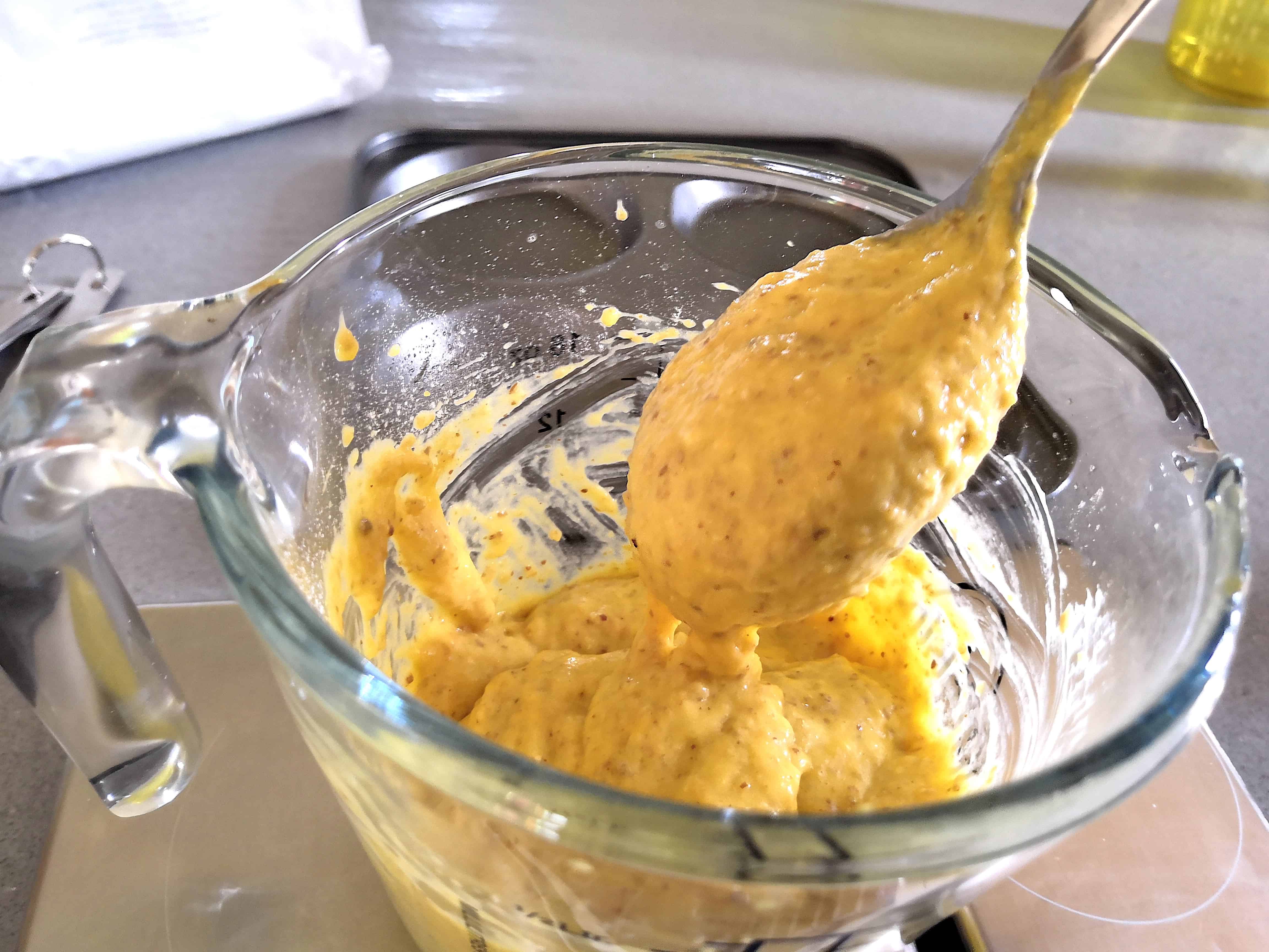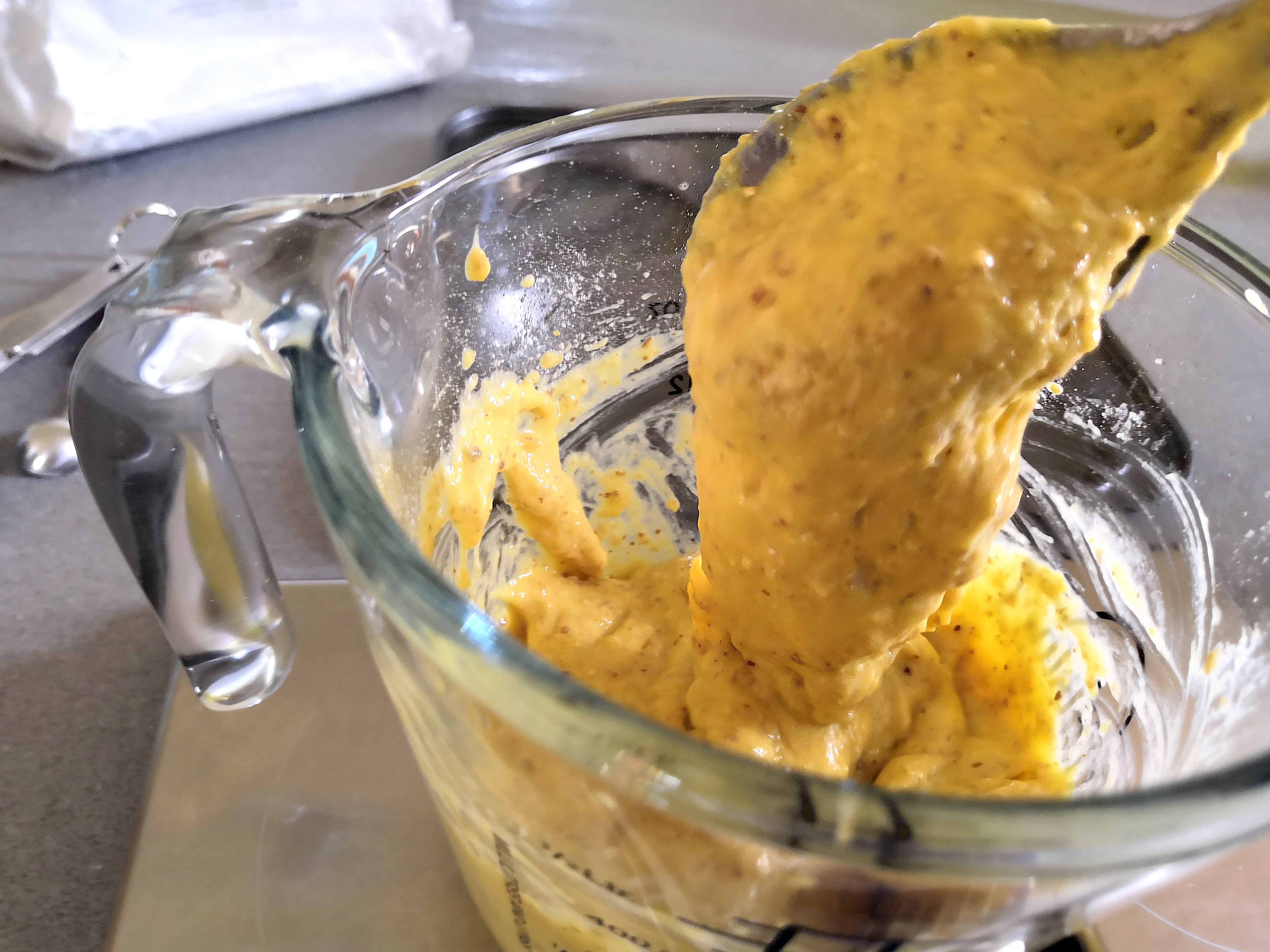 - incorporate fiberflour, baking powder, salt and xanthan gum, by whisking a little more.