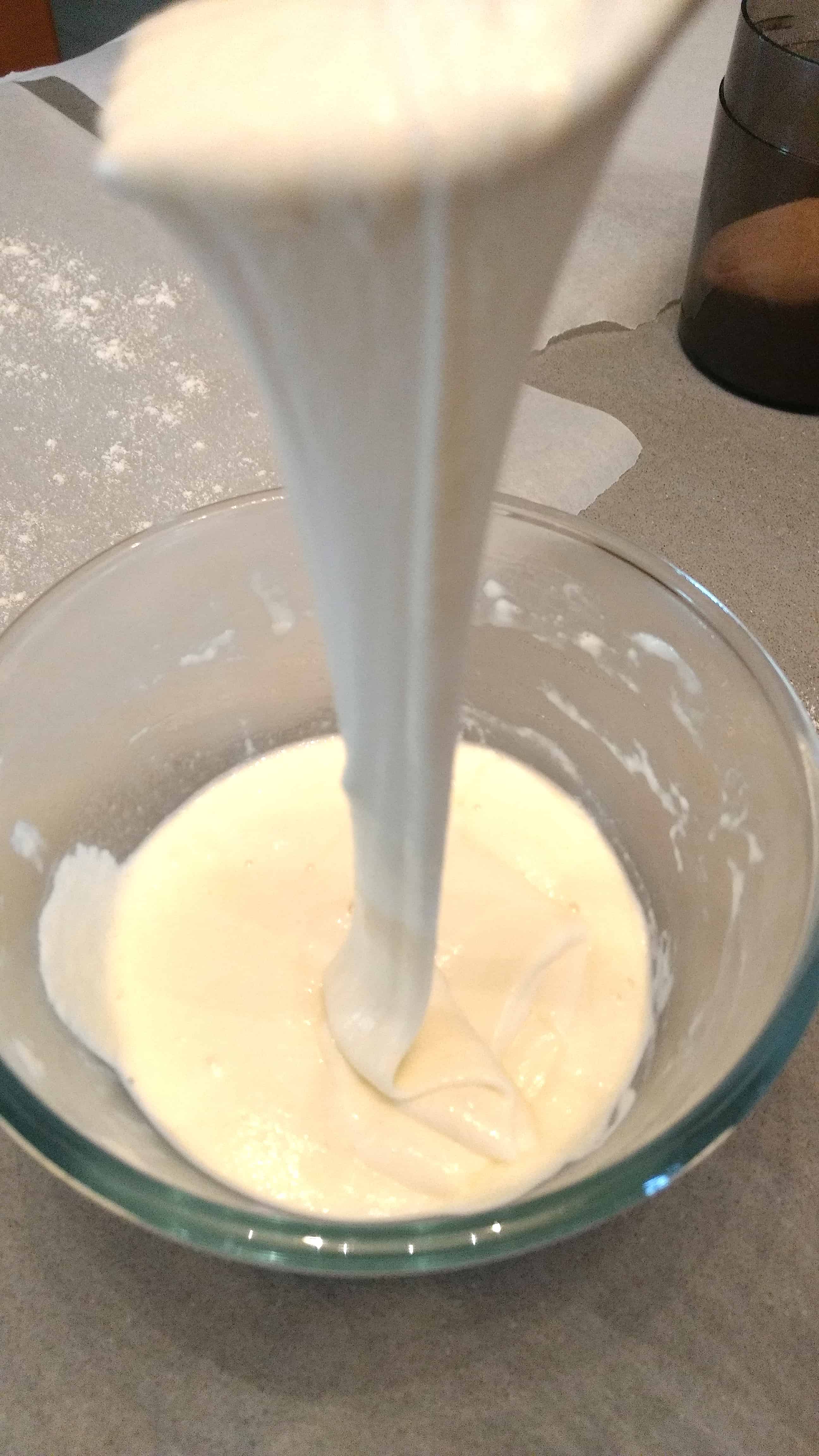 - incorporate lupin flour and mix well, using a fork - it will be sticky initially but will quickly become too hard for the fork; at that point, knead by hand until you have a soft dough-like consistency (dust your hands with a little oat fibre if too sticky).