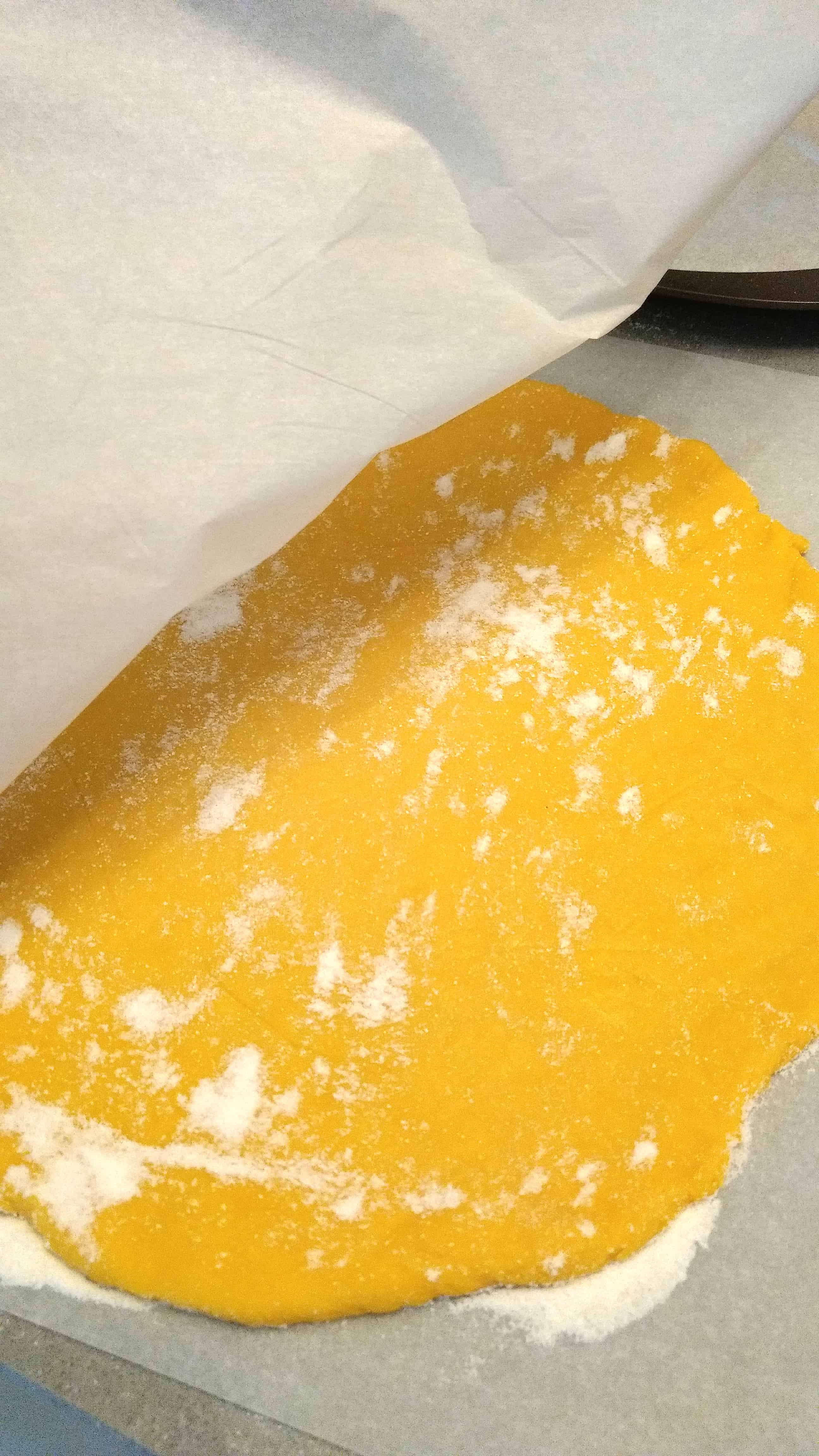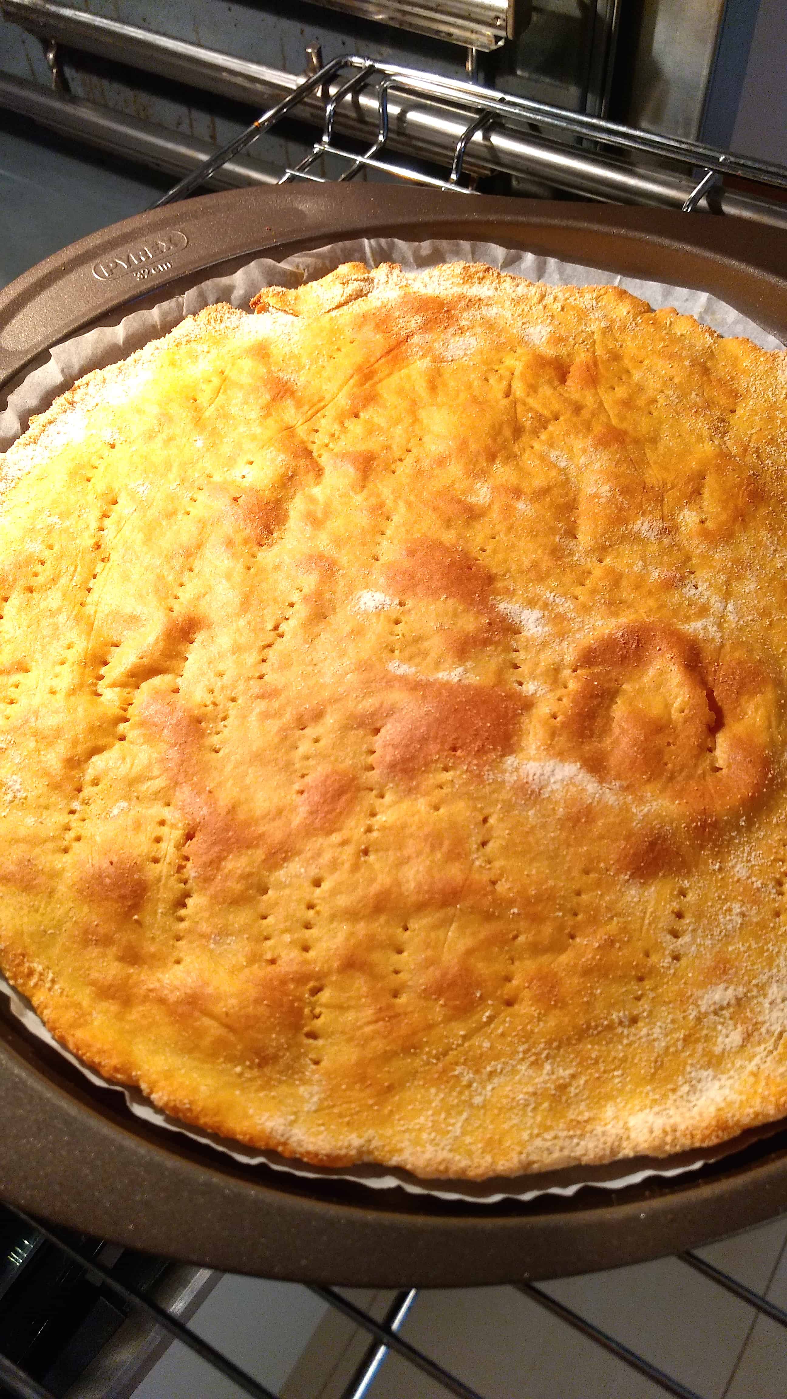 - flatten the dough a bit more so it is very thin, but with even thickness, and poke the whole surface with a fork.