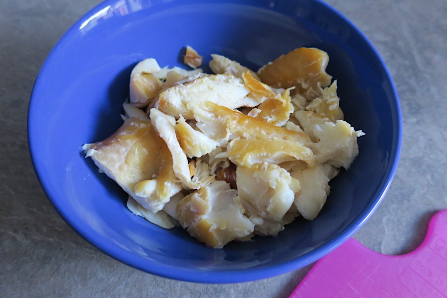 - 360g smoked haddock fillet (230g net weight after poaching and removing skin)