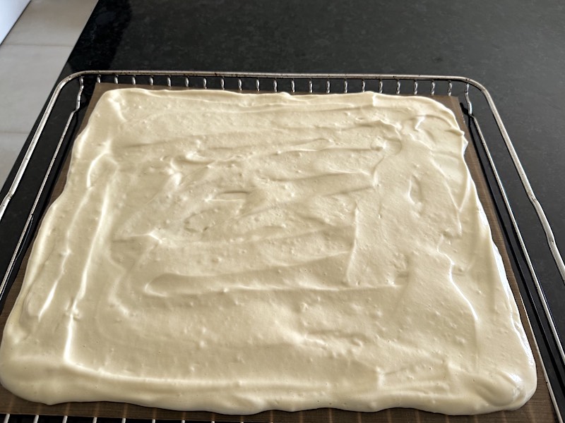 - weigh and mix the remaining dry ingredients, and sift them over the egg whites.15 g egg white powder, 15 g whey protein isolate, ¼ tsp xanthan gum, 1 tsp allulose