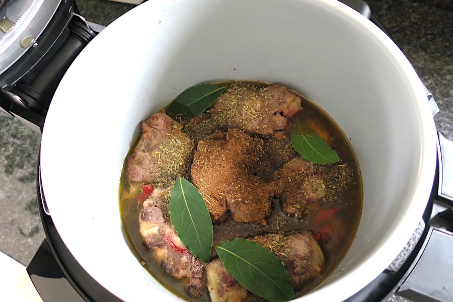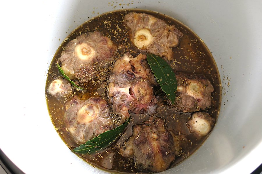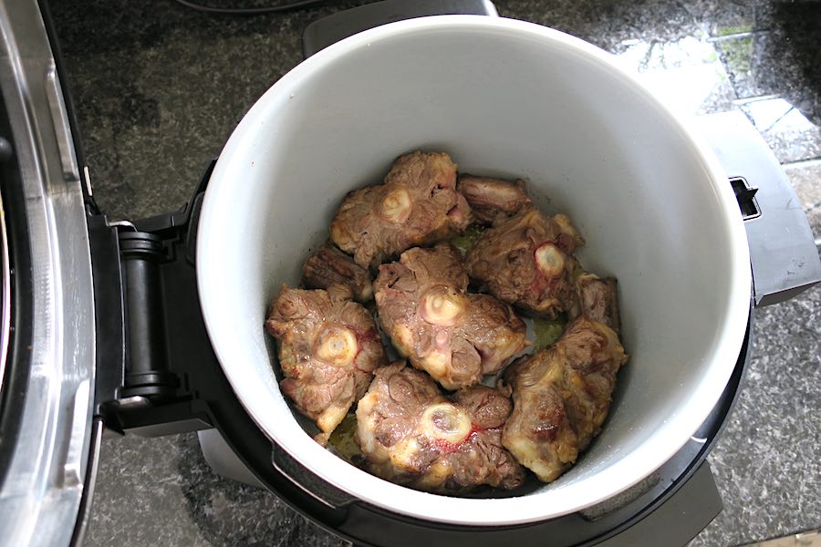 Searing the oxtail pieces is key to locking flavour, so that’s the very first step. After that, add all recipe ingredients and cook very gently for several hours. The result will be intensely-flavoured meat that pulls away form the bone and melts in your mouth.