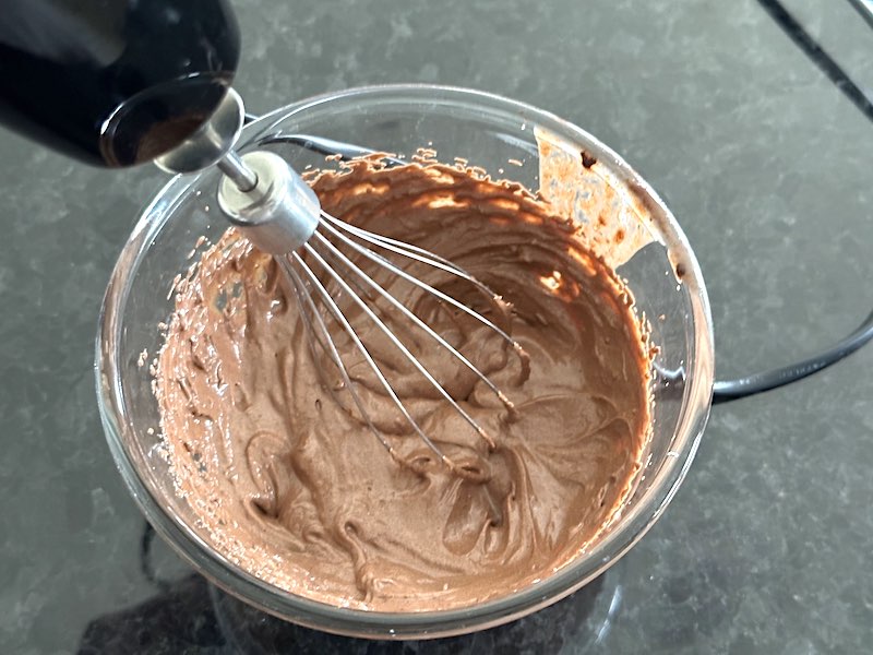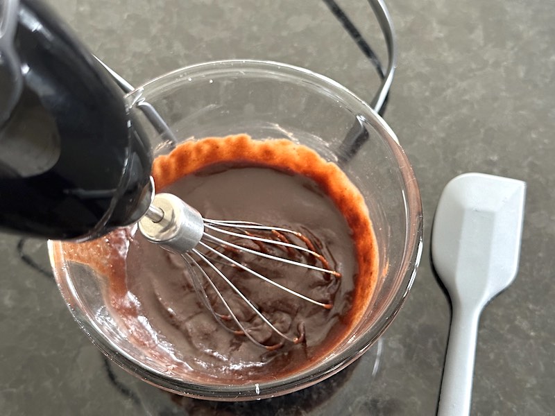 • let cool to semi-solid, thick paste consistency, then use a stick whisk to whip until you obtain a paler, mousse-like, airy texture.